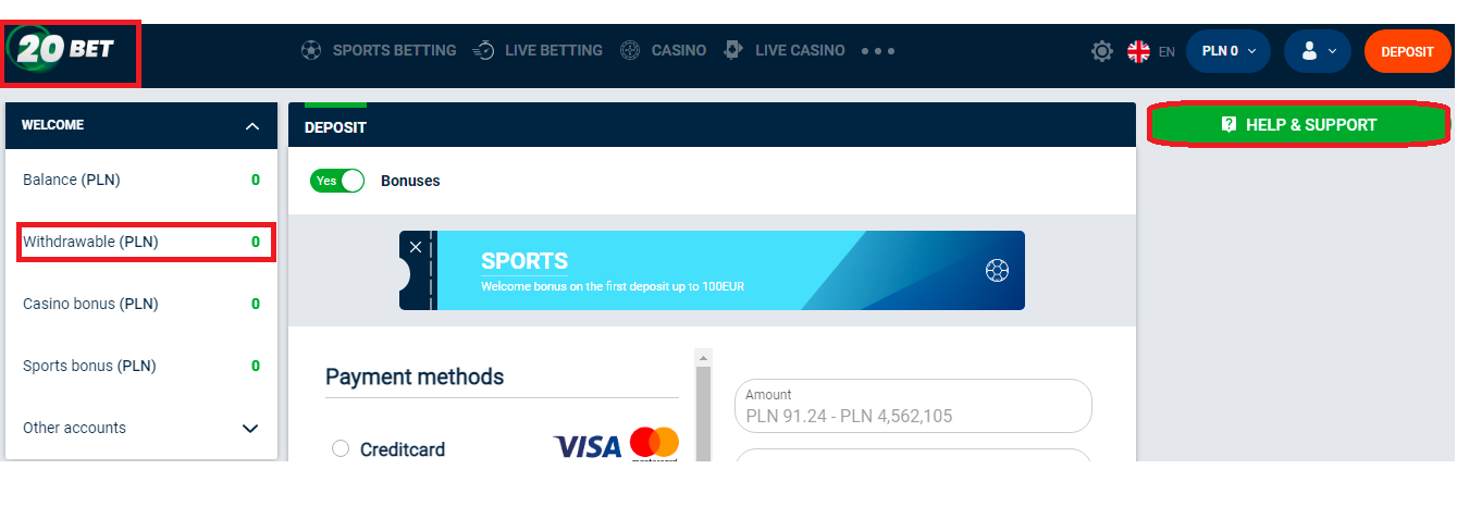 Per quanto riguarda gli importi, 20Bet è molto flessibile e consente di prelevare anche solo 1 euro. Indipendentemente dall’importo che si desidera prelevare, il bookmaker non prende alcuna commissione. Le uniche spese da calcolare sono quelle relative al servizio di pagamento utilizzato. Per quanto riguarda le valute, 20Bet offre un’ampia gamma di opzioni, tra cui peso argentino, dollaro canadese, yuan cinese, euro, rupia indiana, dinaro iracheno, yen giapponese, dollaro neozelandese, corona norvegese, rupia pakistana, franco svizzero, dollaro USA, ecc.